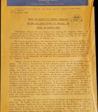 1969 United Nations Greece Official Document – Message of UN General Assembly