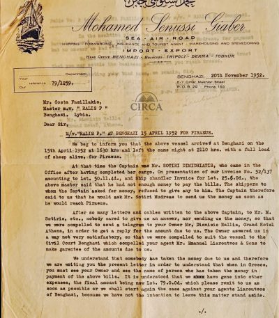 1952 Benghazi Greek Ship “RALLIS P.” Legal Dispute Archive – Shipping Documents