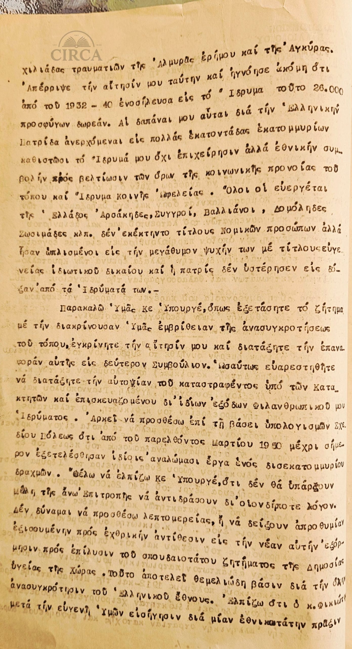 Η αφίσα προβάλλει το έργο του νοσοκομείου, ενώ οι επιστολές, απευθυνόμενες στο Υπουργείο Υγείας, περιγράφουν τη μεγάλη προσφορά του ιδρύματος: