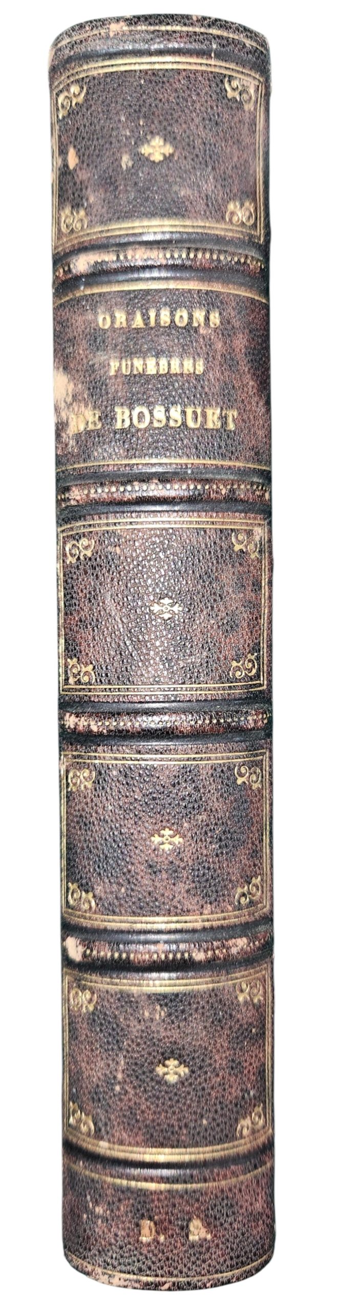 Bound in contemporary half-leather with gilt decorative spine and marbled boards. Includes engraved frontispiece portrait of Bossuet.