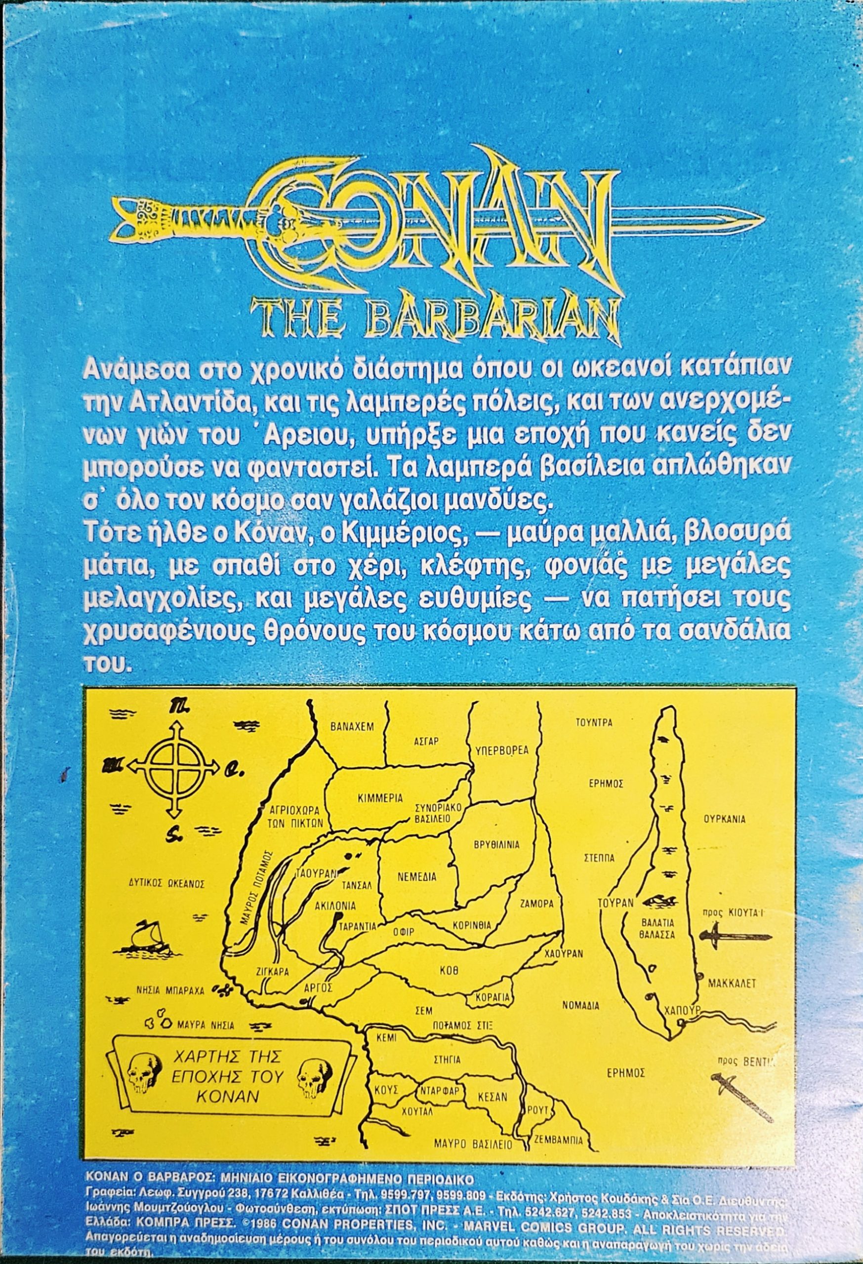 Published in Greece in 1986, this is an early full-color Conan comic produced by Koudakis & SIA O.E., Athens.
