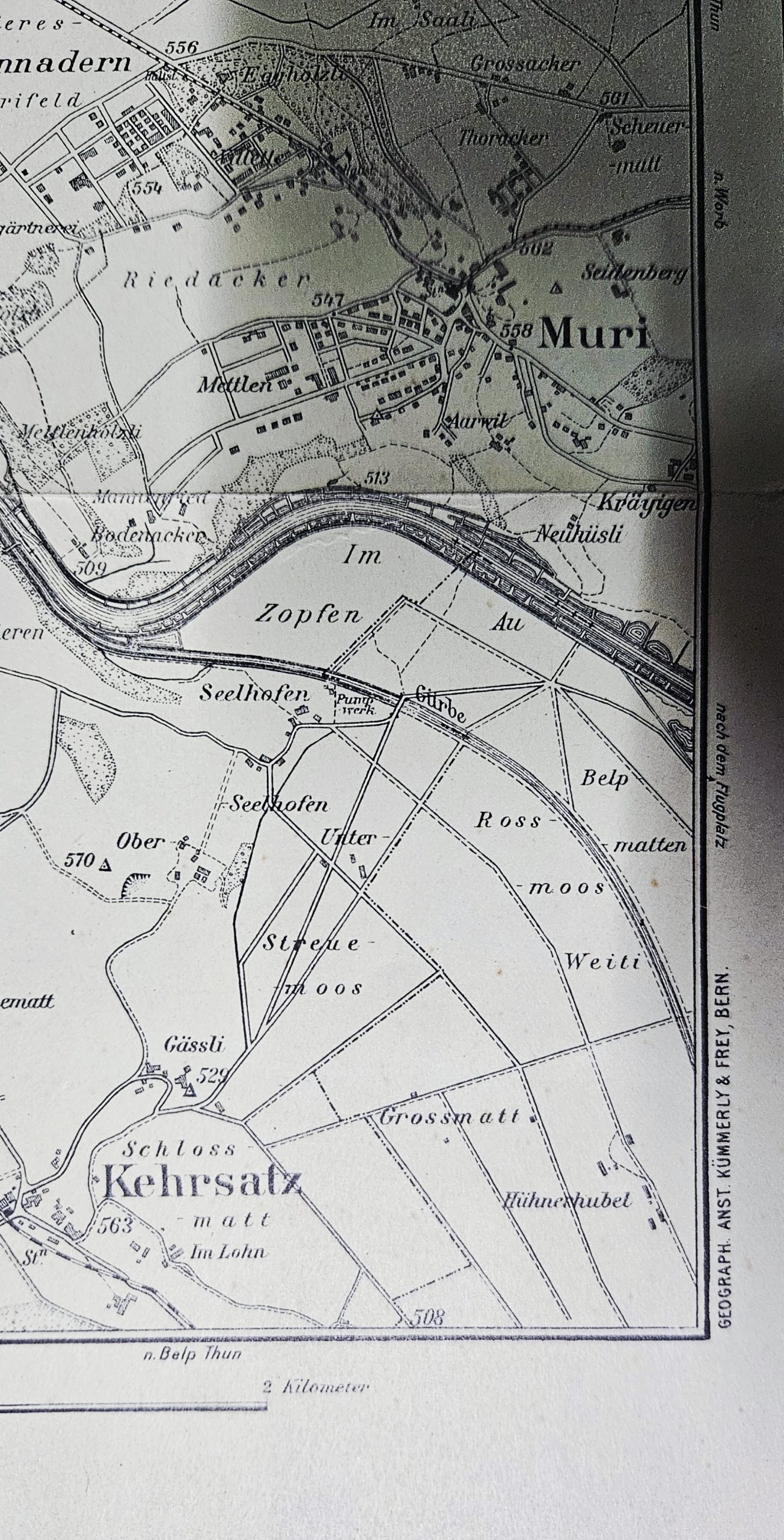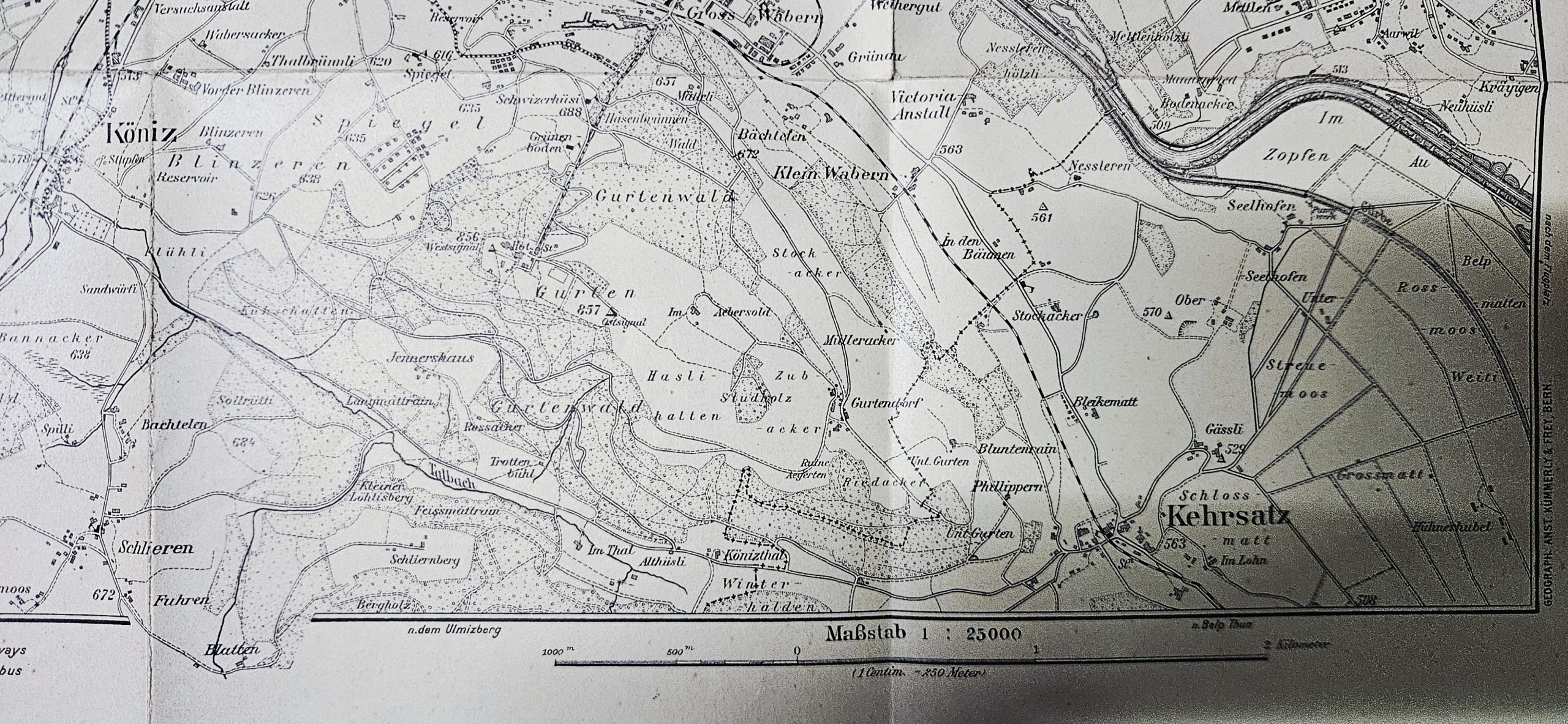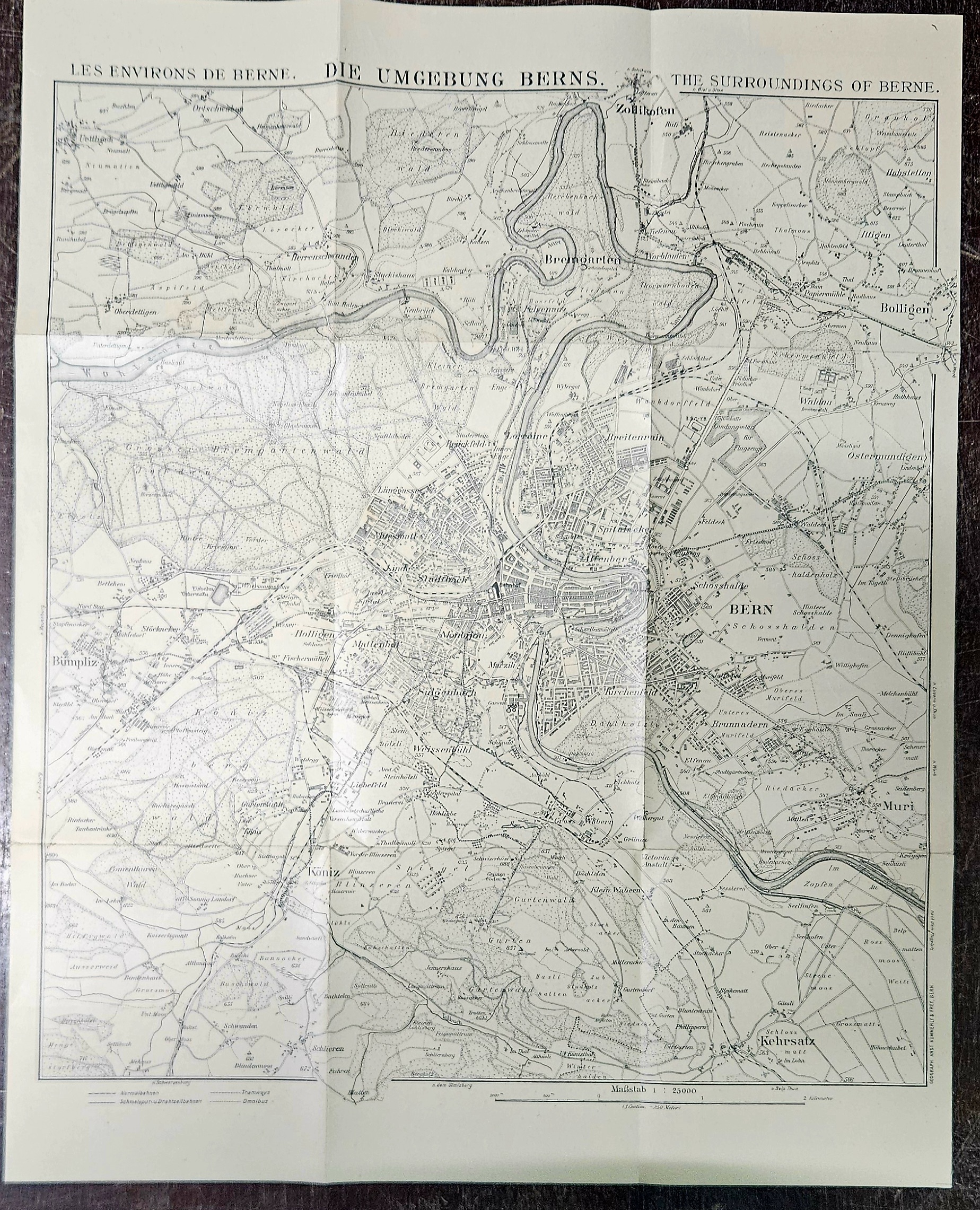 Original early 20th-century folding topographic map of Bern, Switzerland, depicting the city and its surrounding areas in fine cartographic detail.