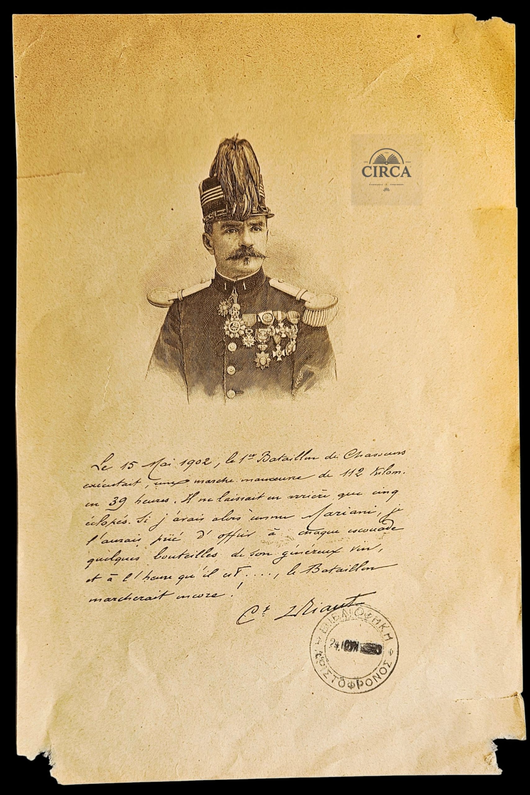 Original French military commemorative sheet dated 15 May 1902.