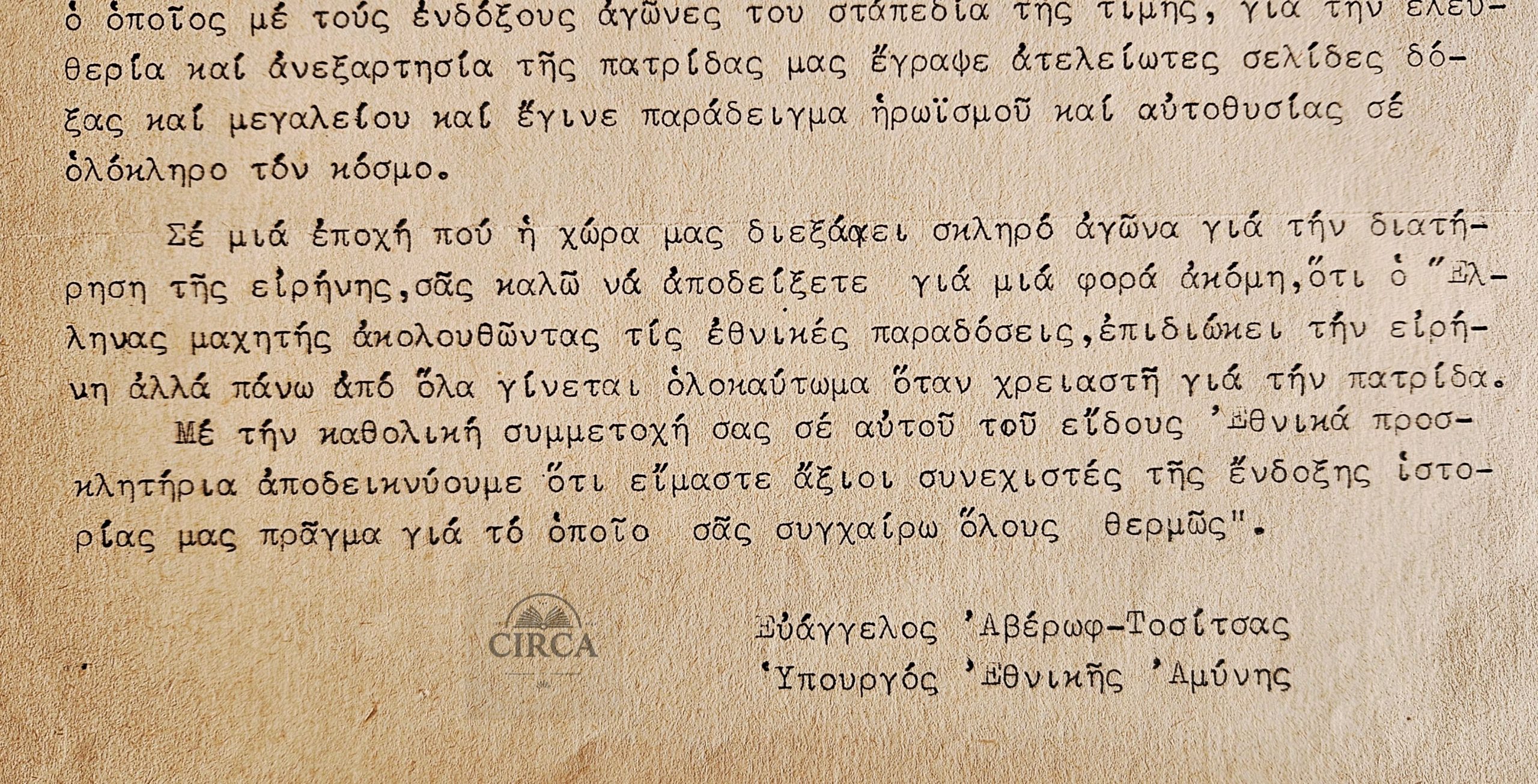 The Minister of National Defence at the time was Evangelos Averoff-Tositsas.