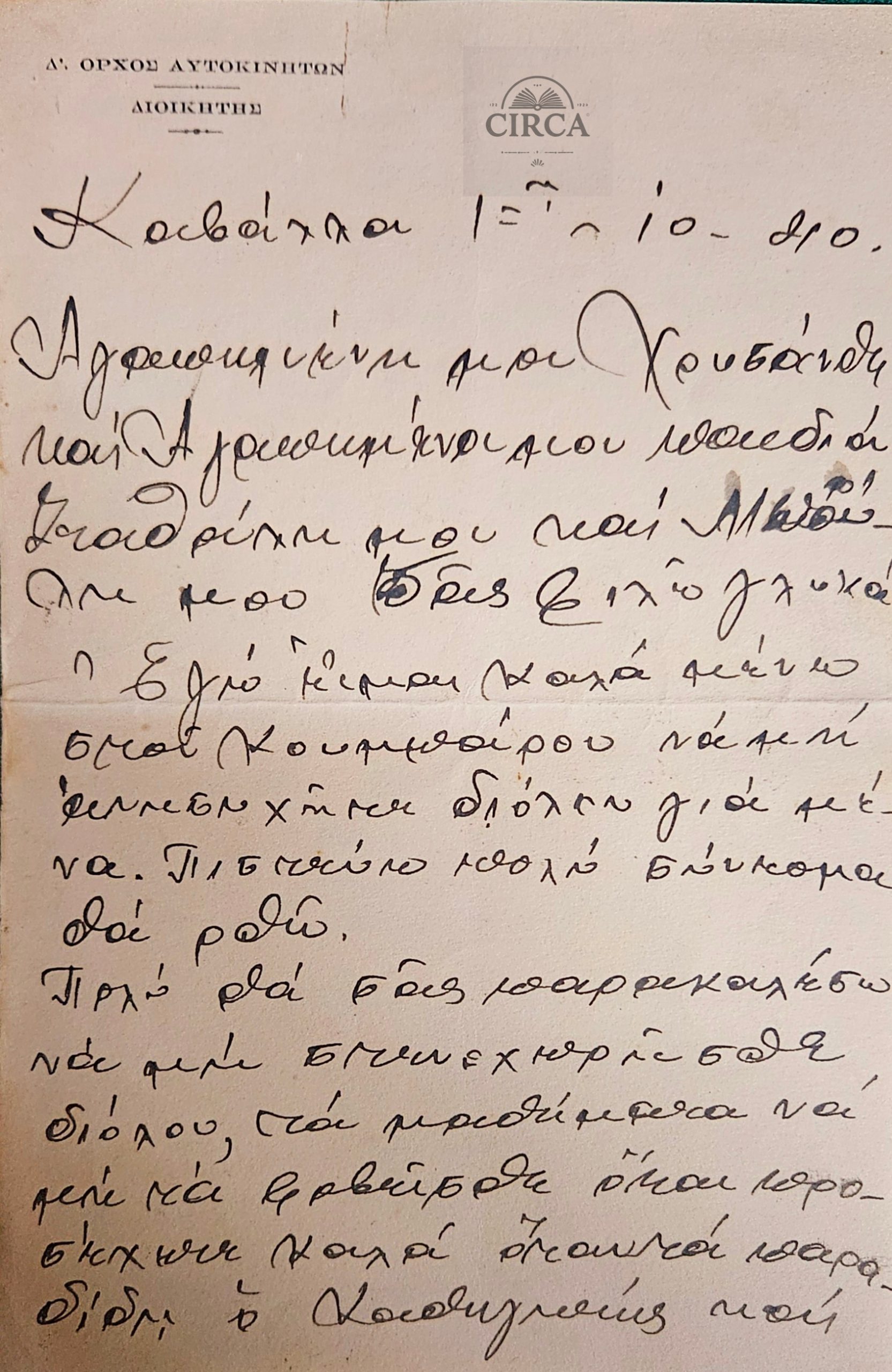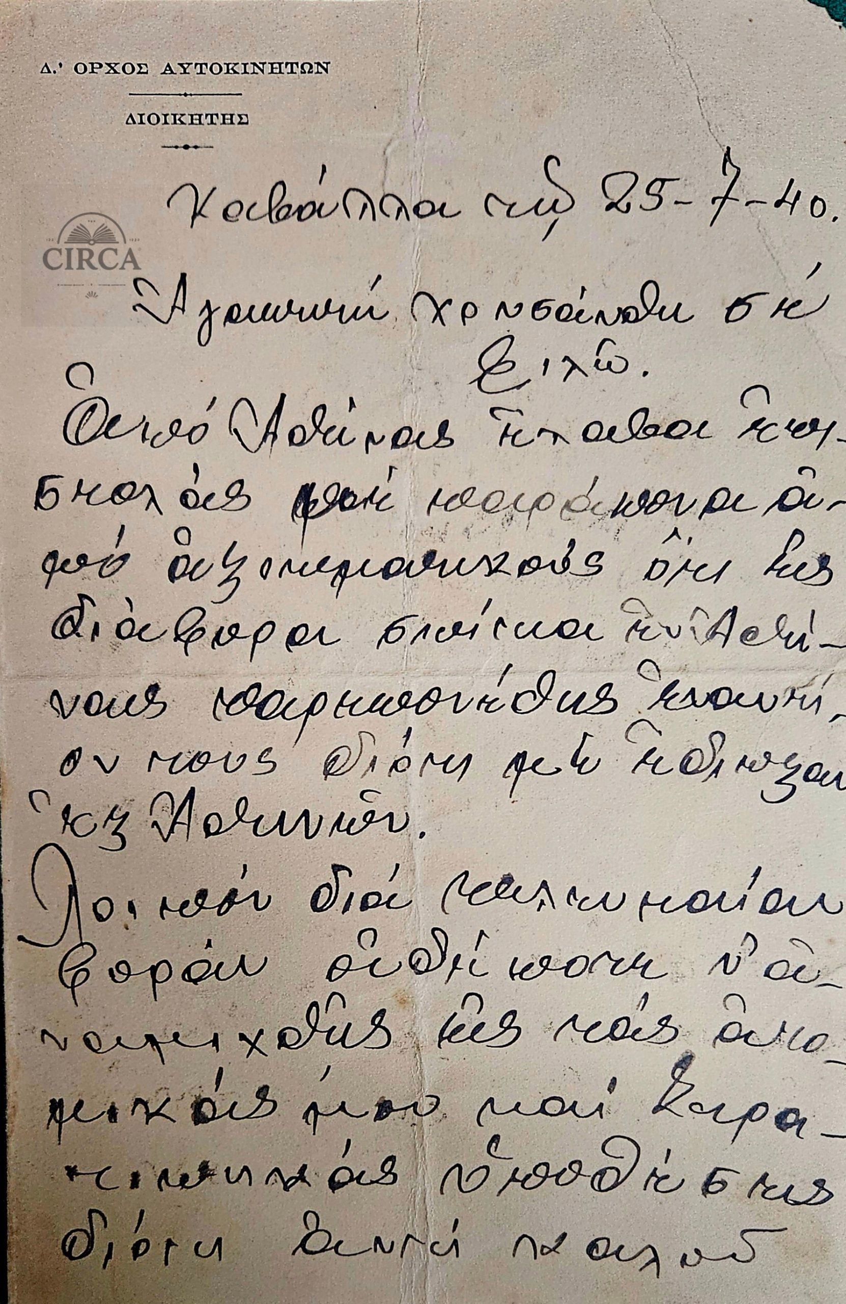 Two original handwritten letters dated July and October 1940, written from Kavala, Greece by a Greek Army officer of the Automobile Corps (Δ’ Όρχος Αυτοκινήτων), during the mobilization period preceding the outbreak of the Greco-Italian War (28 October 1940).