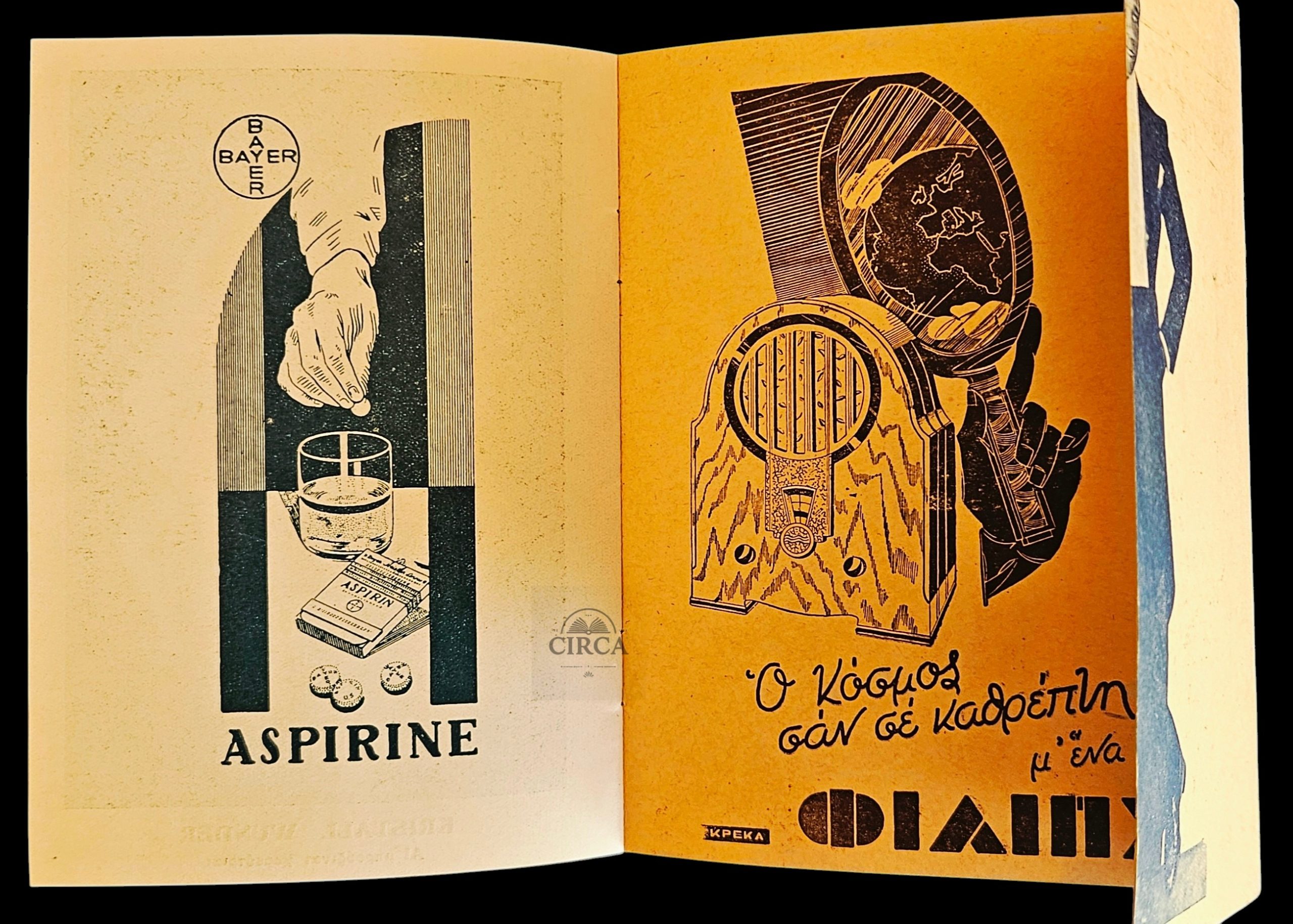 • Numerous illustrated advertisements (Bayer Aspirin, Kolynos, radio sets, etc.)