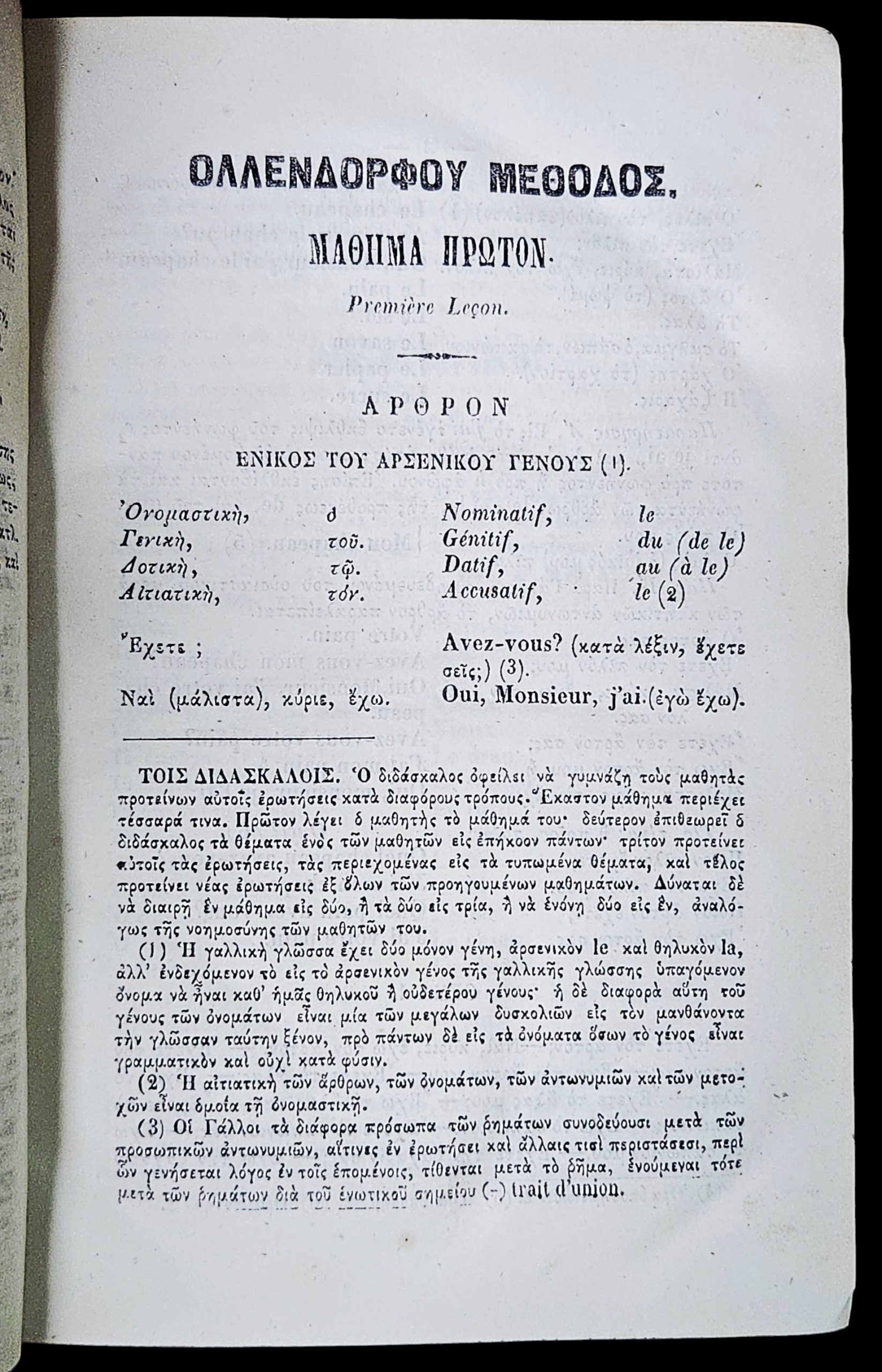 Original 19th-century Greek edition of the famous Ollendorff method for learning the French language.