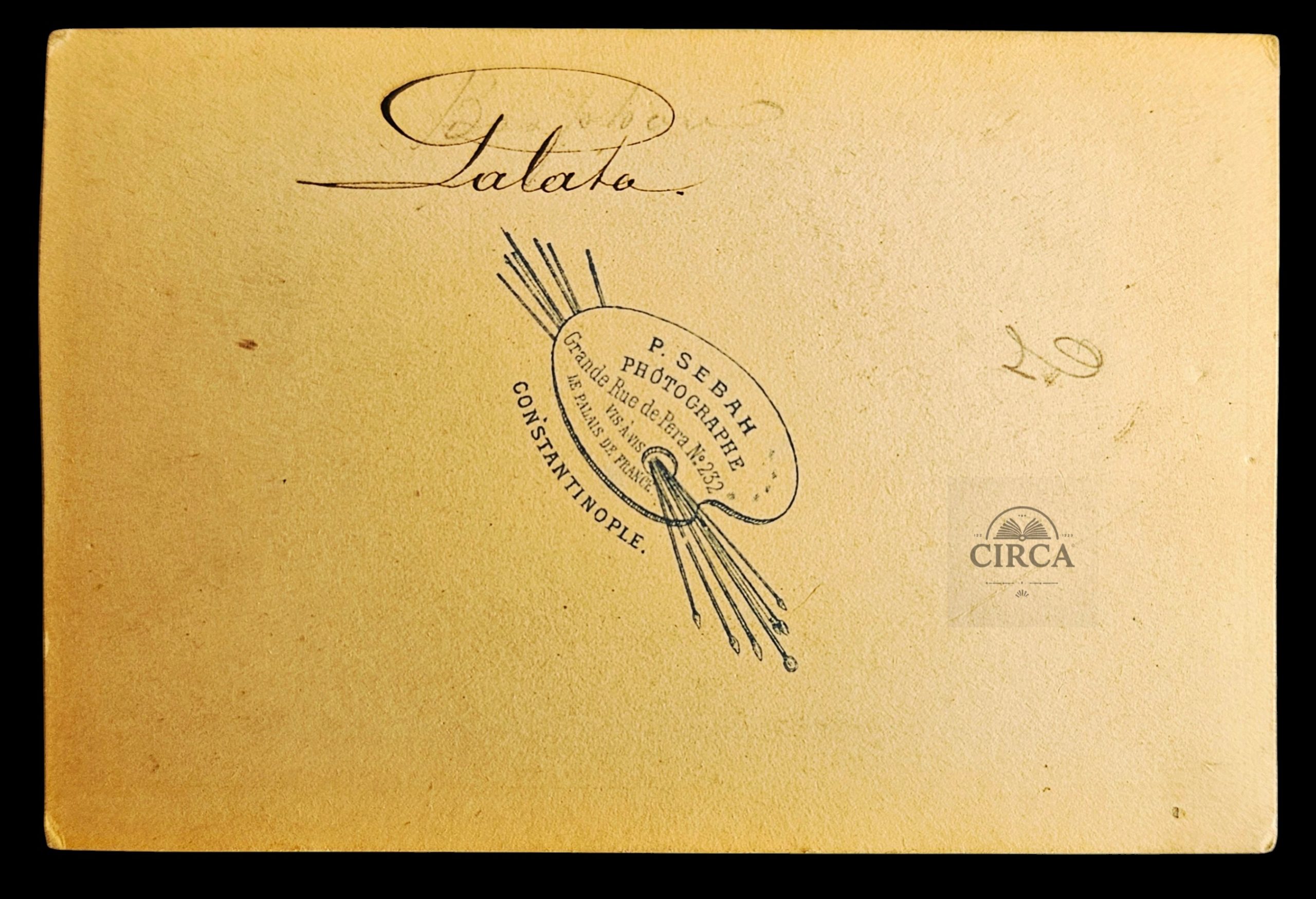 “P. SEBAH – PHOTOGRAPHE – Grande Rue de Péra No. 252 – Constantinople”, confirming production during Sebah’s early, pre–Sebah & Joaillier period.