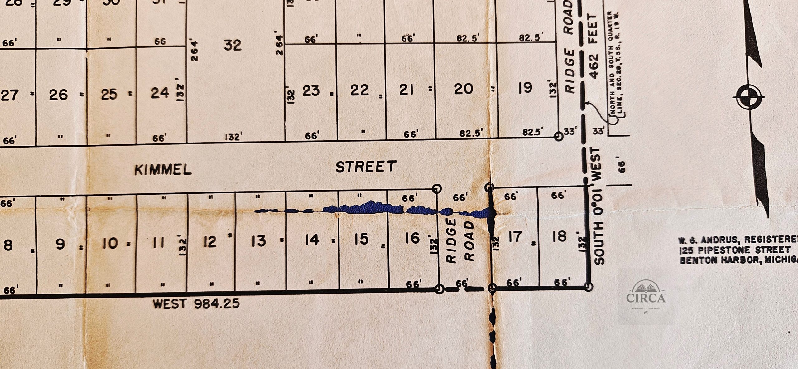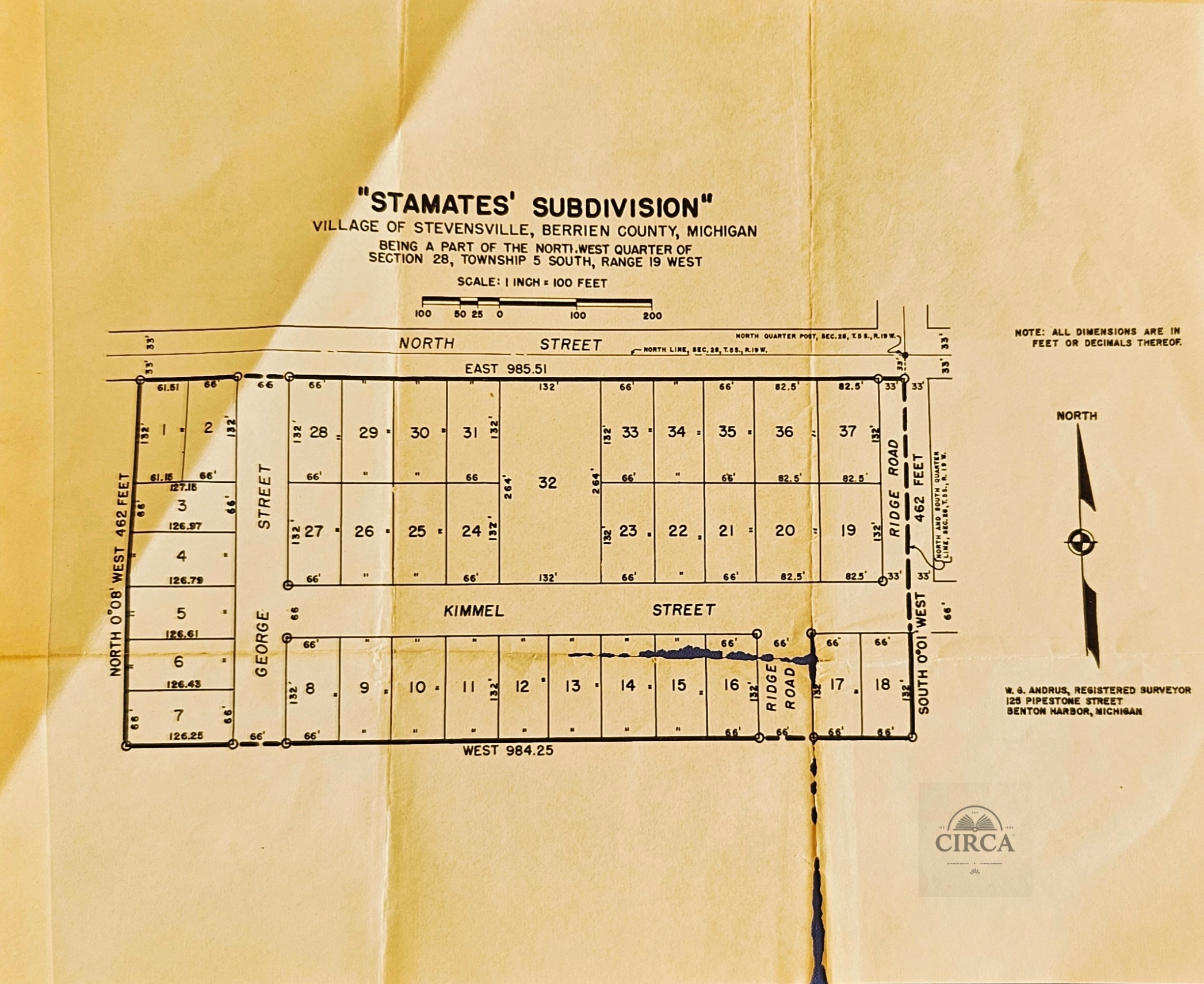 This is an original early 20th century subdivision survey plan, prepared by W. G. Andrus, Registered Surveyor, Benton Harbor, Michigan.