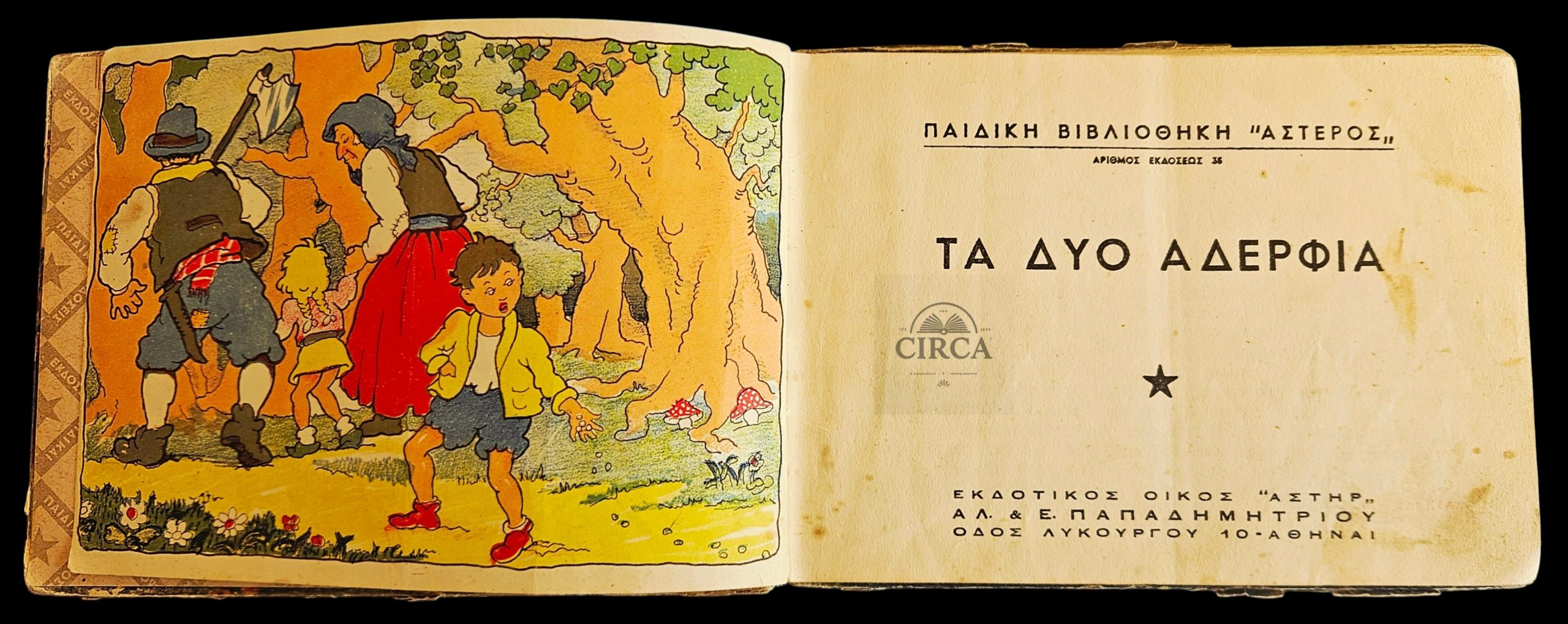 Original Greek children’s booklet titled “Ta Dyo Aderfia”, published by ASTIR, Athens, 1947.