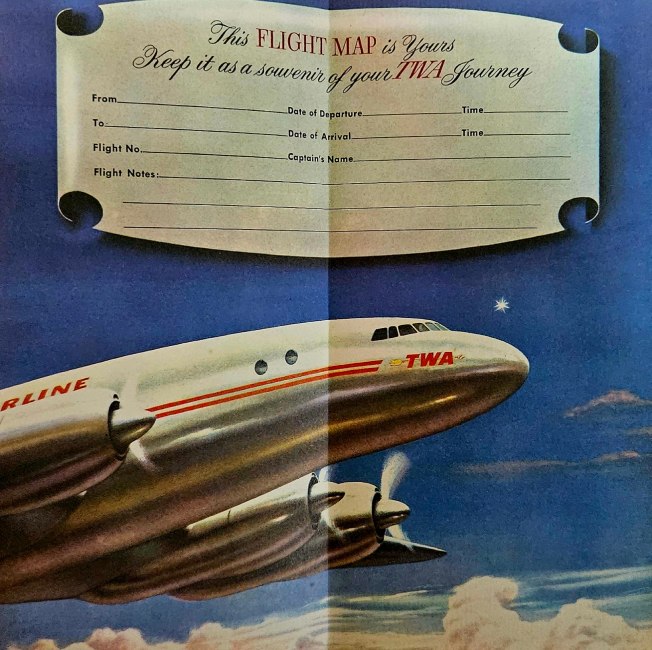 TWA Vintage Flight Map – Trans World Airlines (ca. 1952)
