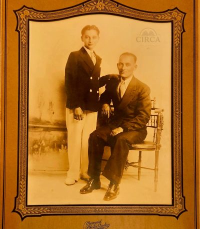 €60.00Original studio portrait of a man and a boy, taken at the famous Mermaid Photo Studio, S. Hasson, 1416 Mermaid Avenue, Coney Island, N.Y..